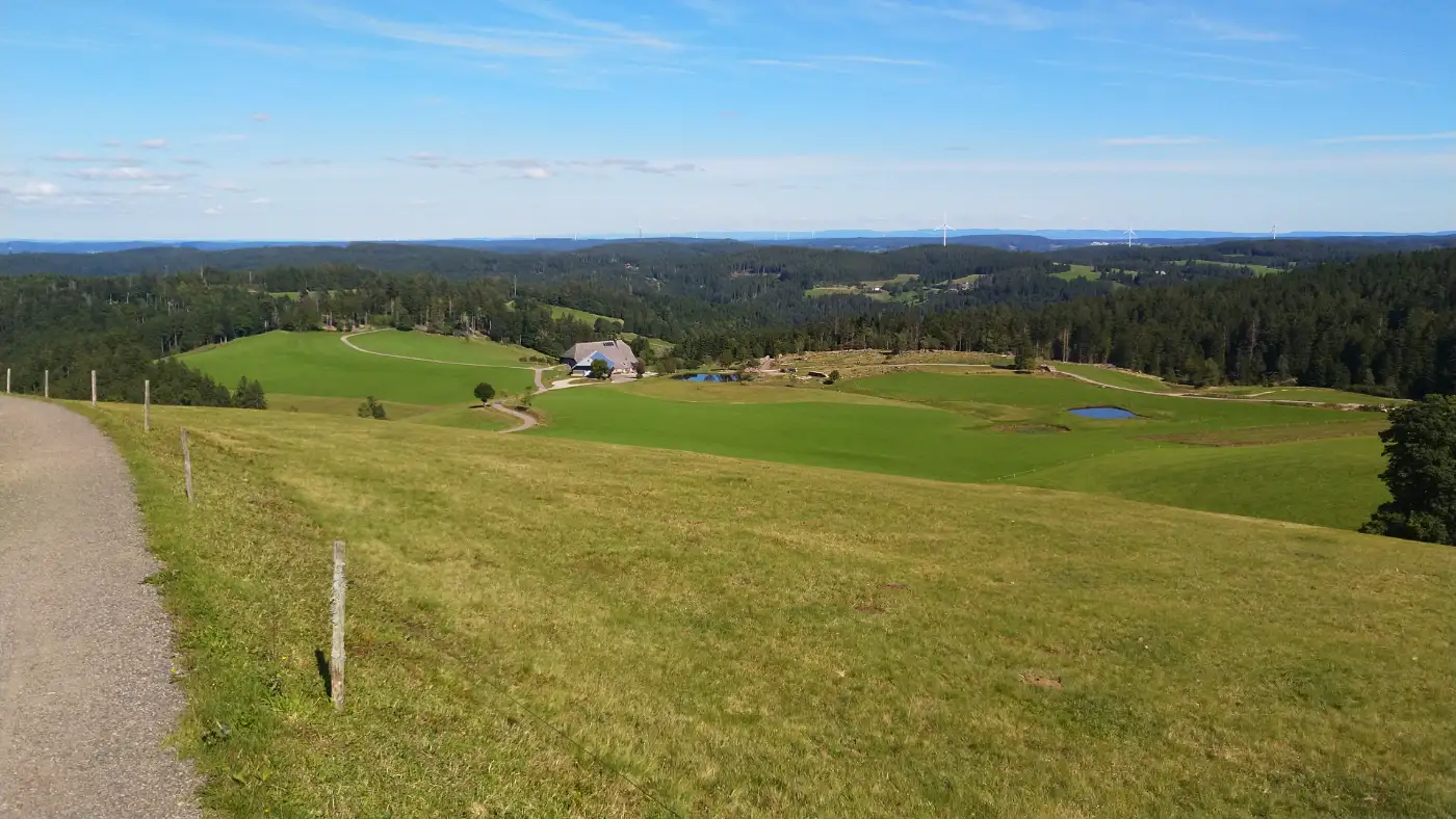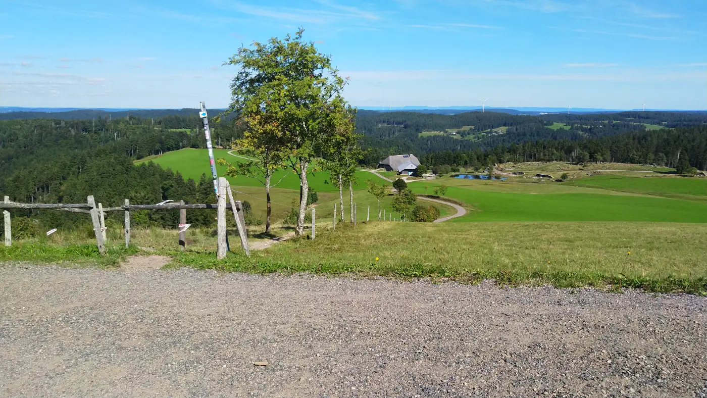 Am Ochsenhof angekommen steigen wir steil hinab in den kleinen Weiler Rohrhardsberg, der malerisch im Elztal liegt. Die verstreuten Höfe mit ihren typischen Schwarzwaldhäusern vermitteln eine fast zeitlose Atmosphäre. Kühe grasen auf weiten Wiesen, während sorgfältig geschichtete Holzstapel vor den Gebäuden von traditioneller Arbeit zeugen. Hier scheint das Leben noch eng mit den Rhythmen der Natur verbunden zu sein. Nach einer kurzen Rast in dieser beschaulichen Umgebung setzen wir unseren Weg weiter in Richtung Schonach fort - begleitet von den Eindrücken einer abwechslungsreichen und aussichtsreichen Etappe.
