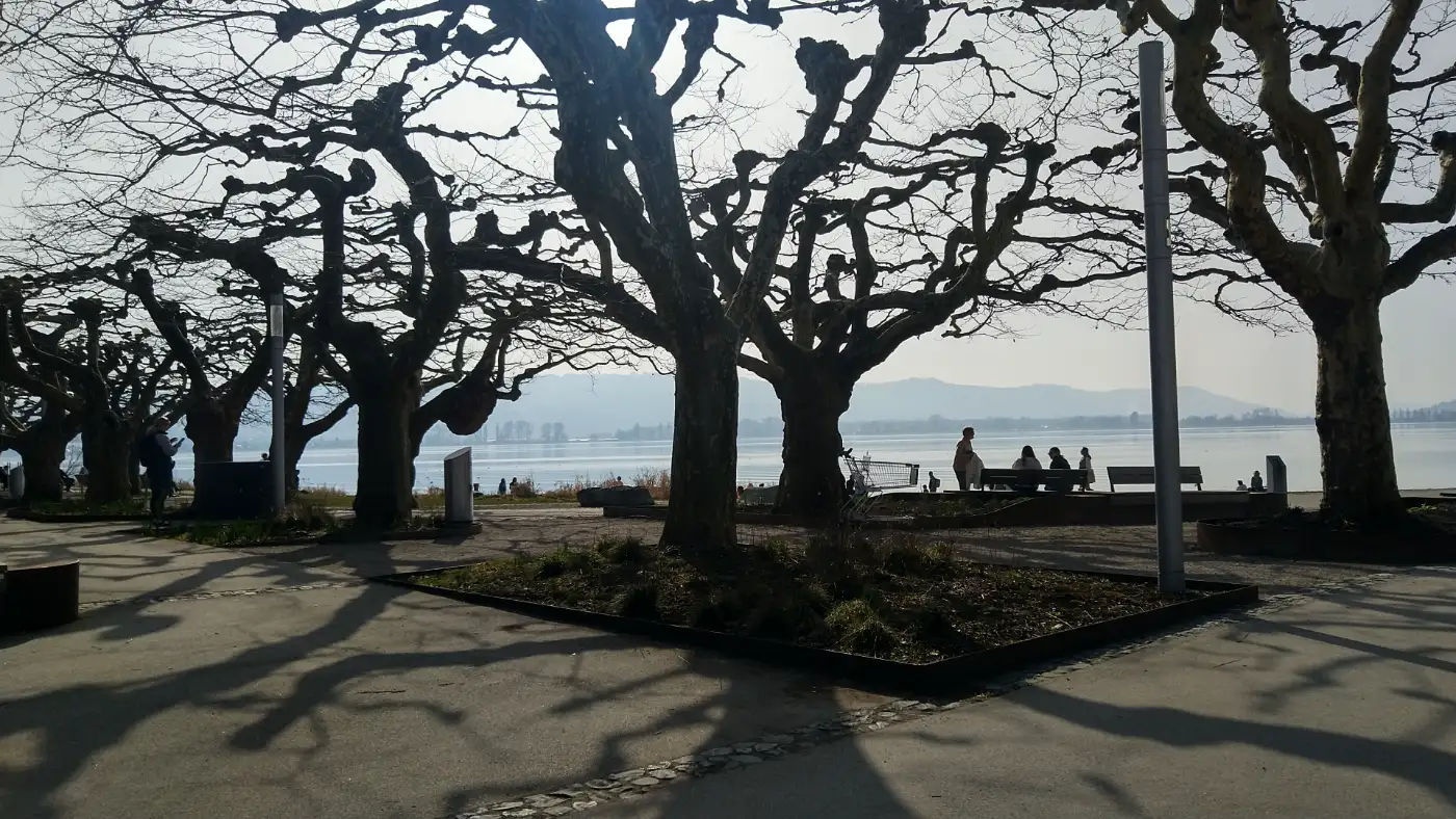 Die letzten Kilometer führen uns direkt ans Ufer nach Radolfzell am Bodensee. Unser Ziel ist die lange Mole Radolfzell, die weit in den Bodensee hinausragt. Wir schieben die Räder bis ans Ende der Mole und genießen den freien Blick über das Wasser. Segelboote ziehen langsam vorbei, Möwen kreisen über dem Hafen, und der See liegt ruhig vor uns. Nach dieser abwechslungsreichen Strecke zwischen Kunst, Geschichte und Natur lassen wir die Tour hier entspannt ausklingen.Diese Tour wurde am 07.03.2026 von einer realen Person erwandert, fotografiert und beschrieben. Die GPS-Daten der Fotos wurden vor Ort erfasst und dienten zur exakten Rekonstruktion der Route.