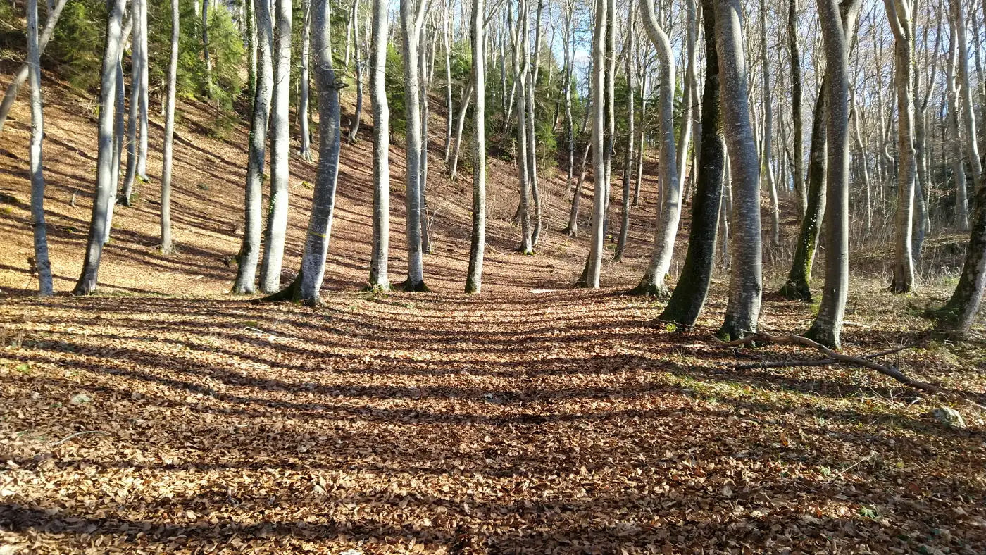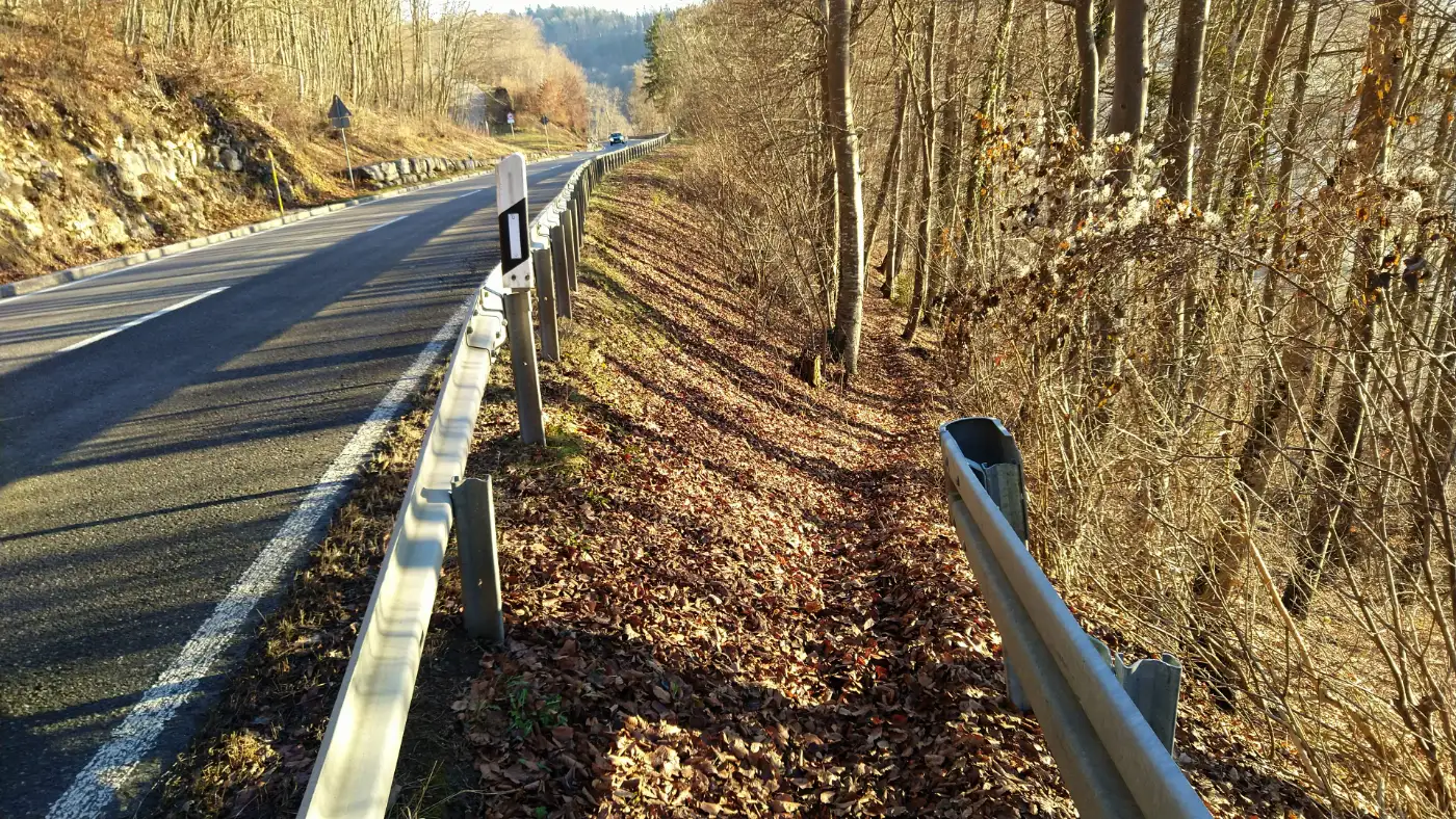 Vom Hirnbühl aus wenden wir uns südwärts und steuern den Bereich des Brugger Steinbruchs an. Der Abstieg nach Dürbheim fordert noch einmal Aufmerksamkeit, denn der Pfad fällt stellenweise steil ab und führt uns durch schattigen Buchenwald hinunter ins Tal. Schritt für Schritt lassen wir die Höhen der Alb hinter uns, bis sich der Wald lichtet und die ersten Häuser von Dürbheim auftauchen. Hier endet unsere Wanderung, geprägt von wechselnden Landschaften, weiten Ausblicken und stillen Passagen, die diese Route besonders vielseitig machen.Diese Tour wurde am 03.12.2025 von einer realen Person erwandert, fotografiert und beschrieben. Die GPS-Daten der Fotos wurden vor Ort erfasst und dienten zur exakten Rekonstruktion der Route.