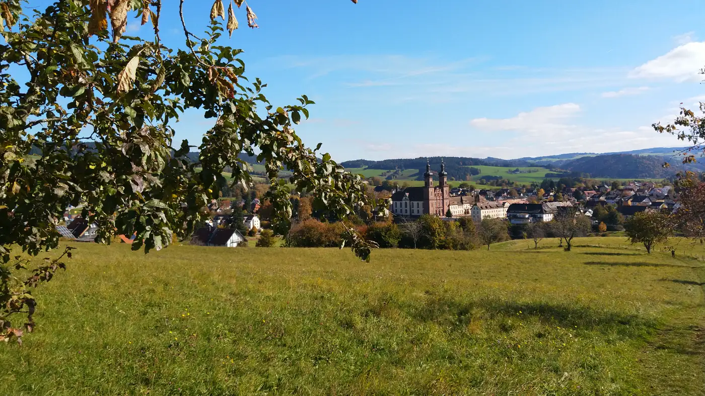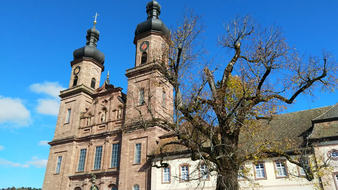 Schwarzwaldtour 19 km, 450 Höhenmeter - herrliche Ausblicke, barocke Klosterkirche und Aussichtsturm mit Panorama über Freiburg und das Rheintal. Unsere Wanderung beginnt im malerischen St. Peter im Schwarzwald, an der Bushaltestelle Zähringer Eck. Von hier führt uns der Weg zunächst zum Bertoldsbrunnen, der auf einem kleinen Platz unweit der Klosterkirche liegt. Zwischen gepflegten Fachwerkhäusern und barocken Fassaden spüren wir sofort die besondere Ruhe dieses Ortes. Der Blick schweift über den Kirchenvorplatz und die prachtvolle Klosterkirche St. Peter, deren Türme sich eindrucksvoll über das Tal erheben. Hier treffen Geschichte und Schwarzwaldidylle aufeinander. Nachdem wir die Atmosphäre genossen haben, schnüren wir unsere Wanderschuhe - vor uns liegt eine Route, die Natur, Kultur und Panorama harmonisch miteinander verbindet.Klosterkirche St. Peter