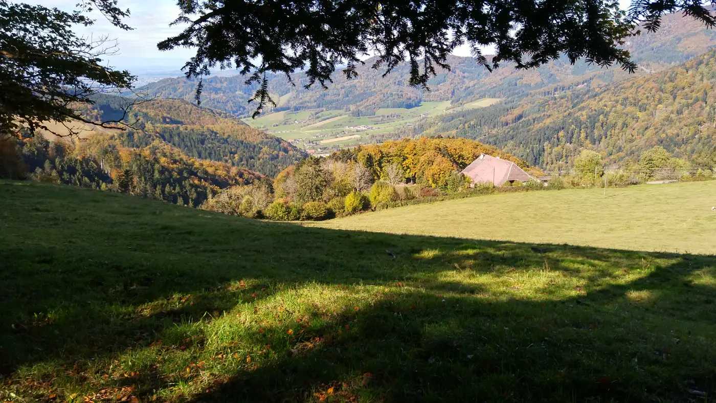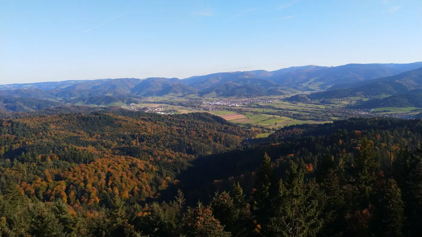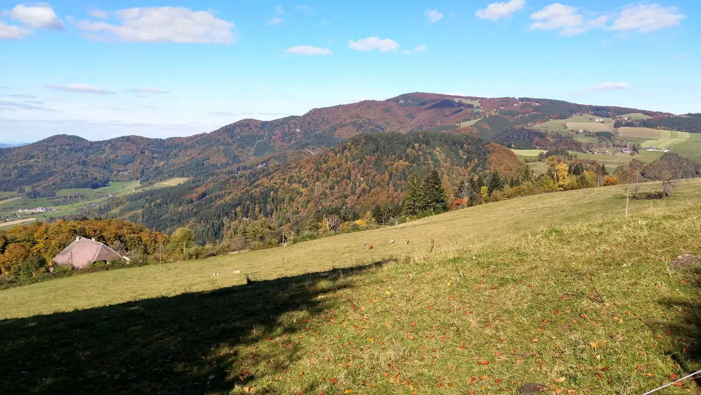 Immer wieder erreichen wir Wegstellen, an denen sich der Blick weit öffnet - hinab ins Glottertal, über die Höhenzüge des Kandelmassivs und weiter zu den Bergen des Breisgaus. In der Ferne schimmern das Rheintal und die Vogesen, während sich auf der gegenüberliegenden Seite der Feldberg majestätisch erhebt. Je nach Lichtstimmung wandelt sich das Panorama: Morgendunst liegt wie ein Schleier über den Tälern, später taucht die Sonne die Wiesen in warmes Gold, und am Horizont leuchten die Schwarzwaldberge in tiefem Blau. Wir verweilen still, lassen die Weite auf uns wirken und spüren dieses besondere Gefühl, ganz im Augenblick angekommen zu sein.Rosskopf und Rosskopfaussichtsturm