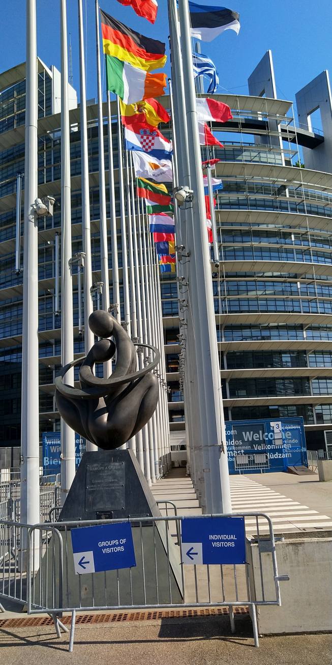 Ganz in der Nähe befinden wir uns nun im europäischen Viertel. Wir passieren den Palais de l’Europe, der seit 1977 Sitz des Europarates ist, sowie den Europäischen Gerichtshof für Menschenrechte, der für den Schutz der Grundrechte von über 700 Millionen Bürgern in Europa verantwortlich ist.Europaparlament