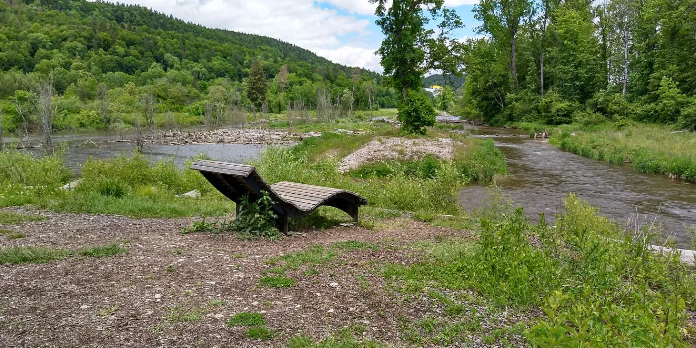 Nach einer Weile gelangen wir auf dem Schluchtensteig zum Weizener Steg, eine kleine Brücke, die uns auf die andere Seite der Wutach führt. Kurz darauf erreichen wir den Bahnhof Weizen, die Endstation der Sauschwänzlebahn. Mit etwas Glück können wir hier eine der nostalgischen Dampfloks bewundern, bevor wir weiterziehen.Bahnhof Lausheim/Blumegg