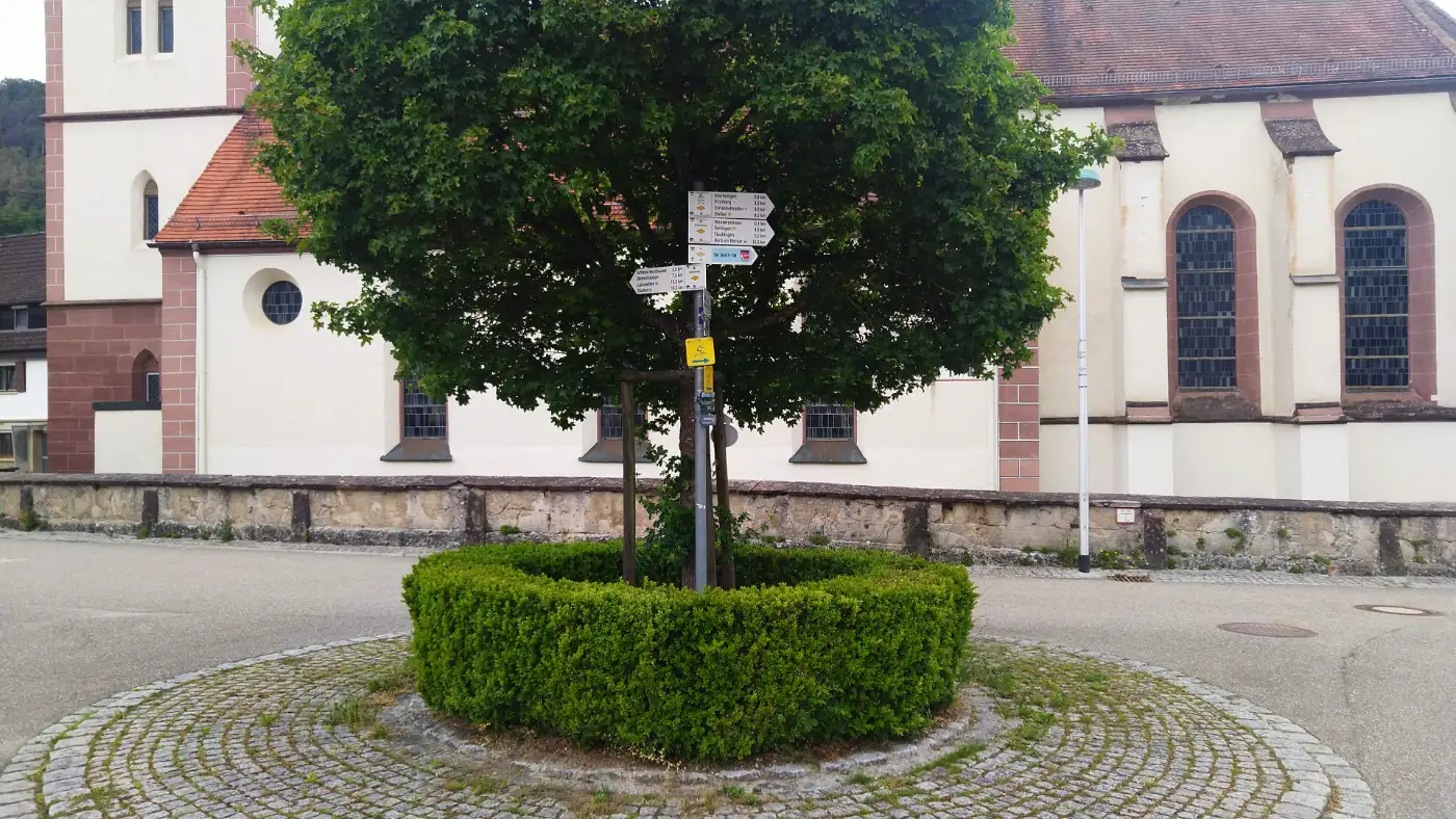 Unsere Tour beginnt am Bahnhof von Sulz am Neckar, einem charmanten Städtchen mit historischer Altstadt. Nach dem Verlassen des Bahnhofs überqueren wir die Bundesstraße und folgen dem Stockensteigweg hinauf zum höher gelegenen Ortsteil Schillerhöhe.Kirche St. Gallus in Glatt