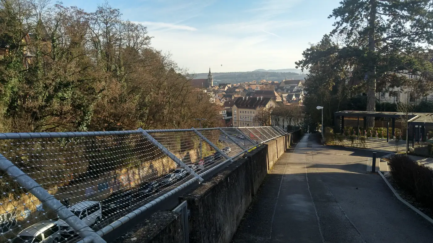Am Holzmarkt passieren wir die Stiftskirche St. Georg und treten auf ihren Vorplatz. Der markante Turm ragt hoch über die Dächer der Altstadt hinaus und prägt das Stadtbild seit Jahrhunderten. Die spätgotische Kirche ist nicht nur architektonisch bedeutend, auch ihr Turm kann zu bestimmten Zeiten bestiegen werden: Zwischen Ostern und Erntedankfest ist er bei gutem Wetter an ausgewählten Wochenenden und in den Sommerferien geöffnet und bietet einen weiten Blick über Tübingen, das Neckartal und die umliegende Landschaft. Anschließend führt uns der Weg wieder über die Eberhardsbrücke, durch die schattige Platanenallee und den Anlagenpark mit seinem See zurück zum Bahnhof Tübingen - ein stimmiger Abschluss unserer Stadttour.Diese Tour wurde am 20.12.2025 von einer realen Person erwandert, fotografiert und beschrieben. Die GPS-Daten der Fotos wurden vor Ort erfasst und dienten zur exakten Rekonstruktion der Route.