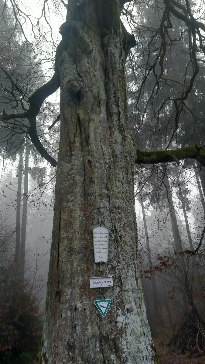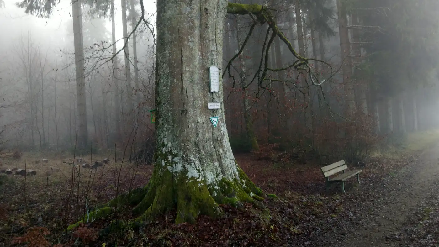 Unser Weg führt uns weiter zur Sengenbühlbuche, die markant am Wegesrand steht. Als eindrucksvolle Rotbuche gehört diese Art zu den wichtigsten Laubbäumen Mitteleuropas und dominiert vielerorts die einheimischen Wälder. Rotbuchen können in der freien Landschaft stattliche Höhen über 30 Meter erreichen und mehrere Hundert Jahre alt werden, besonders wenn sie an prominenten, exponierten Standorten wachsen. Die glatte, silbergraue Rinde, die weit ausladende Krone und die ovale Blattgestalt verleihen der Buche ein charakteristisches Aussehen.Rückweg zum Busbahnhof