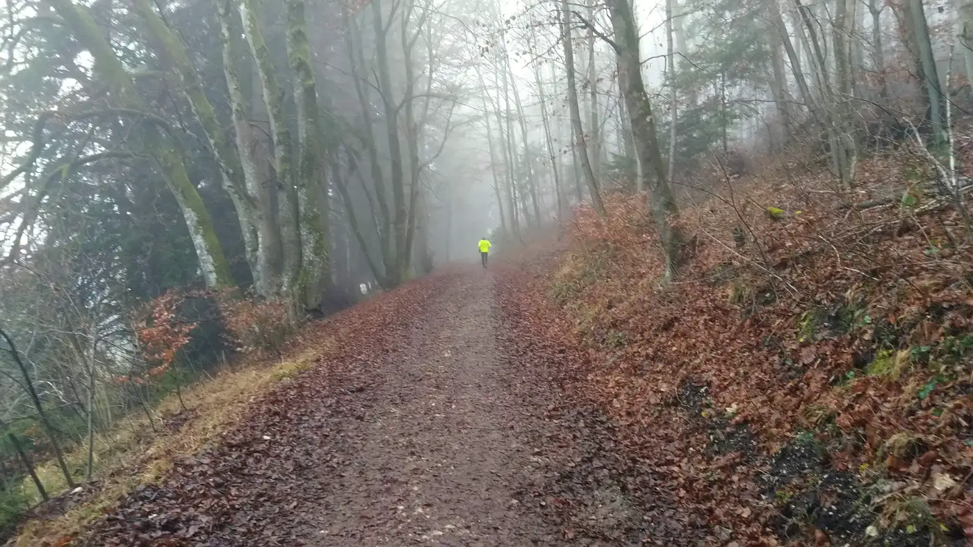 Unser Weg führt uns hinauf zur Festungsruine Burg Honberg, die gut sichtbar über der Stadt thront. Der Anstieg ist kurz, aber spürbar, und belohnt uns mit ersten weiten Ausblicken. Zwischen Mauern, Bastionen und offenen Flächen bewegen wir uns durch die Überreste der einst mächtigen Anlage. Die erhöhte Lage macht deutlich, warum dieser Ort früher strategisch so bedeutend war.Weg in den Wald