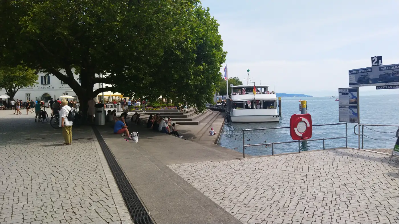 Genieße eine abwechslungsreiche Tour entlang des Bodensees mit historischen Kirchen, barocker Architektur und eindrucksvollen Ausblicken auf Wasser und Weinberge. Wir beginnen unsere Tour im Villengarten von Überlingen, wo gepflegte Anlagen und alte Bäume eine besondere Ruhe ausstrahlen. Zwischen Blumenrabatten und schattigen Wegen genießen wir den Blick auf den See, der uns gleich zu Beginn in Urlaubsstimmung versetzt. Die elegante Architektur der umliegenden Villen erinnert an die glanzvolle Geschichte der Region.Landungsplatz in Überlingen
