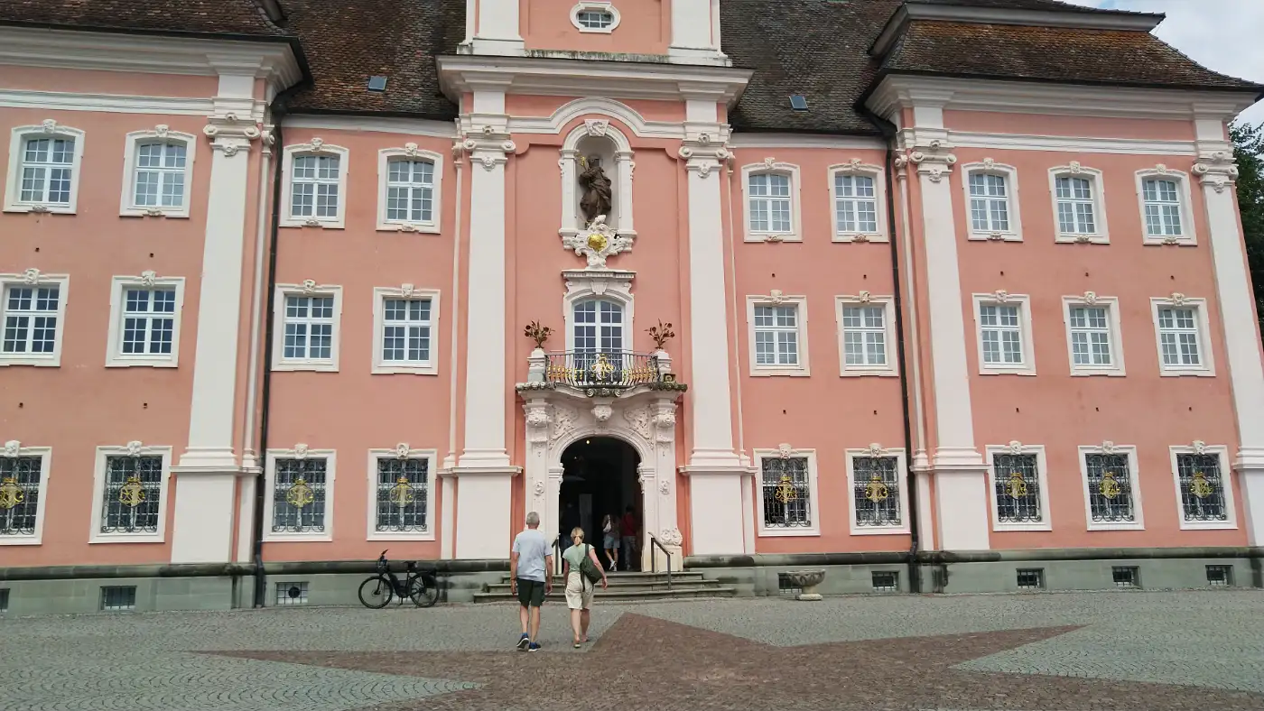 Von dort führt uns der Weg hinunter zum Landungsplatz. Hier bewundern wir den markanten Lenk Brunnen, der als modernes Kunstwerk das Wasser auf überraschende Weise in Szene setzt. Am Ufer herrscht lebendiges Treiben - Boote legen an, Spaziergänger flanieren, und wir atmen die frische Seeluft ein, bevor wir unsere Route fortsetzen.Kloster Birnau