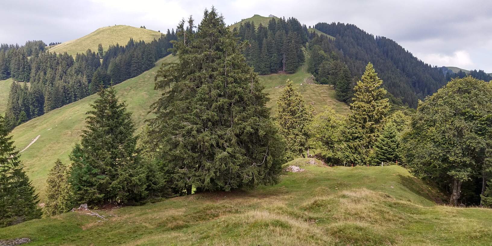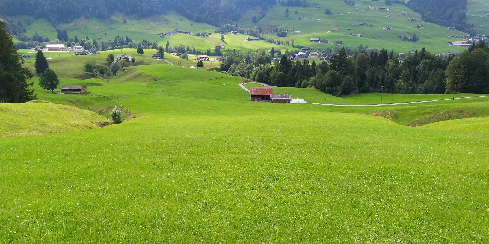 Vom Parkplatz im Zentrum von Urnäsch starten wir unsere Tour und wandern zunächst auf gut ausgebauten Wegen durch eine idyllische Voralpenlandschaft. Während des Aufstiegs begleiten uns weidende Kühe, blühende Alpwiesen und die charakteristischen Holzhäuser der Appenzeller Bauernhöfe. Der Weg führt über sanfte Anstiege und durch kleine Waldstücke, die an heißen Tagen angenehmen Schatten spenden.Alpsteinpanorama Säntismassiv