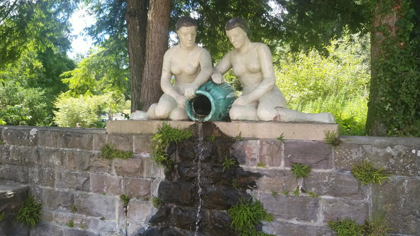 Der Villinger Kurgarten, 1935 im Kirnachtal angelegt, ist ein bedeutendes Beispiel für die Gartenkunst der 1930er Jahre. Besonders hervorzuheben sind die Majolika-Figuren von Erna Kientz-Vogel, gefertigt in der Kanderner Fayencemanufaktur unter der Leitung von Richard Bampi. Diese kunstvollen Keramikskulpturen, darunter Darstellungen von Harmonikaspielern und Badenden, fügen sich harmonisch in die Gestaltung des Parks ein und stehen seit 2014 unter Denkmalschutz. Nachdem wir den malerischen Kurgarten durchquert haben, führt der Weg weiter über die Gleisbrücke der Schwarzwaldbahn hinein ins ruhige Groppertal.Das Groppertal