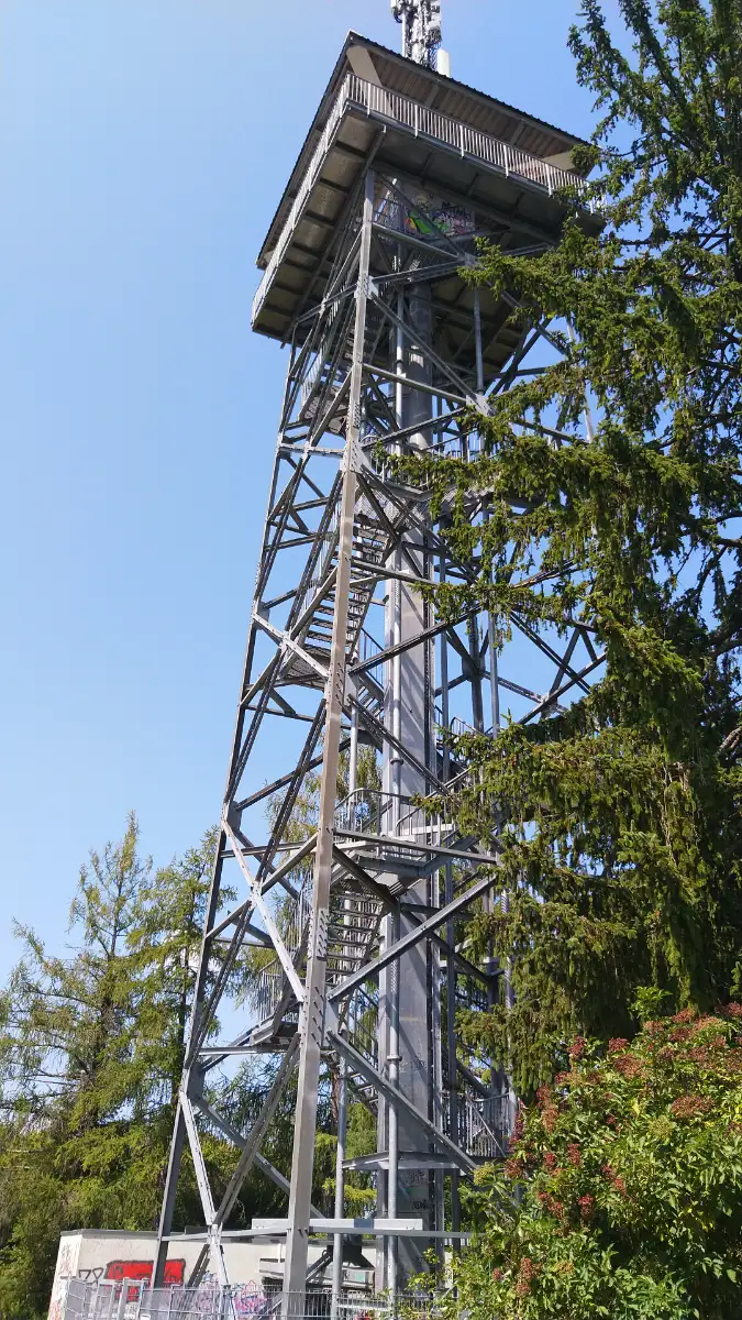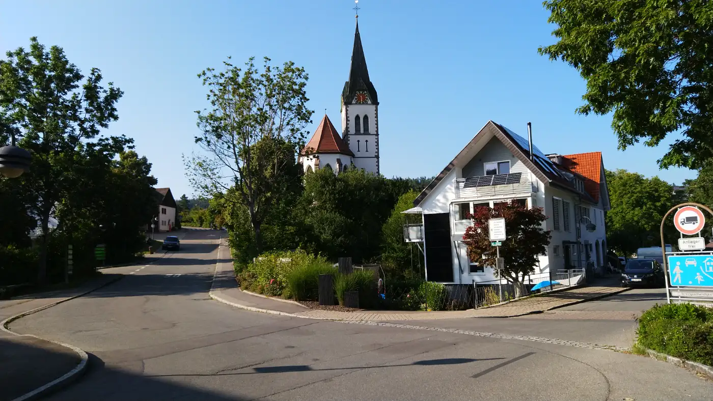 Wir verlassen die Altstadt durch den grünen Hubenlochpark, wo sich für Interessierte ein kurzer Abstecher zum Aussichtsturm lohnt - von hier aus eröffnet sich ein weiter Blick über Villingen. Danach setzen wir unseren Weg fort und passieren die Aral-Tankstelle. Kurz darauf stoßen wir auf eine Gedenktafel, die an den Standort des ehemaligen Villinger Hochgerichts erinnert. Bis 1773 wurden hier Urteile gesprochen und vollstreckt, wobei der Galgen als sichtbares Zeichen der höchsten Rechtsprechung diente. Der massive Stein, an dem die Tafel angebracht ist, steht schon seit Jahrhunderten an diesem Platz. Im Jahr 2000 wurde die Gedenktafel von der Pfarrei St. Konrad gemeinsam mit lokalen Sportvereinen installiert, um die historische Bedeutung des Ortes zu bewahren.Sühnekreuz am Geistmoosweg