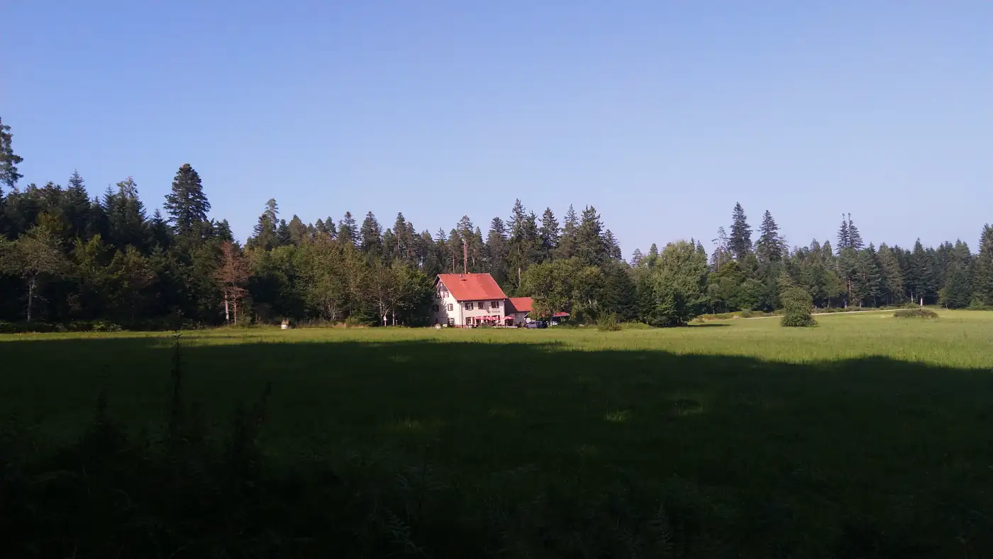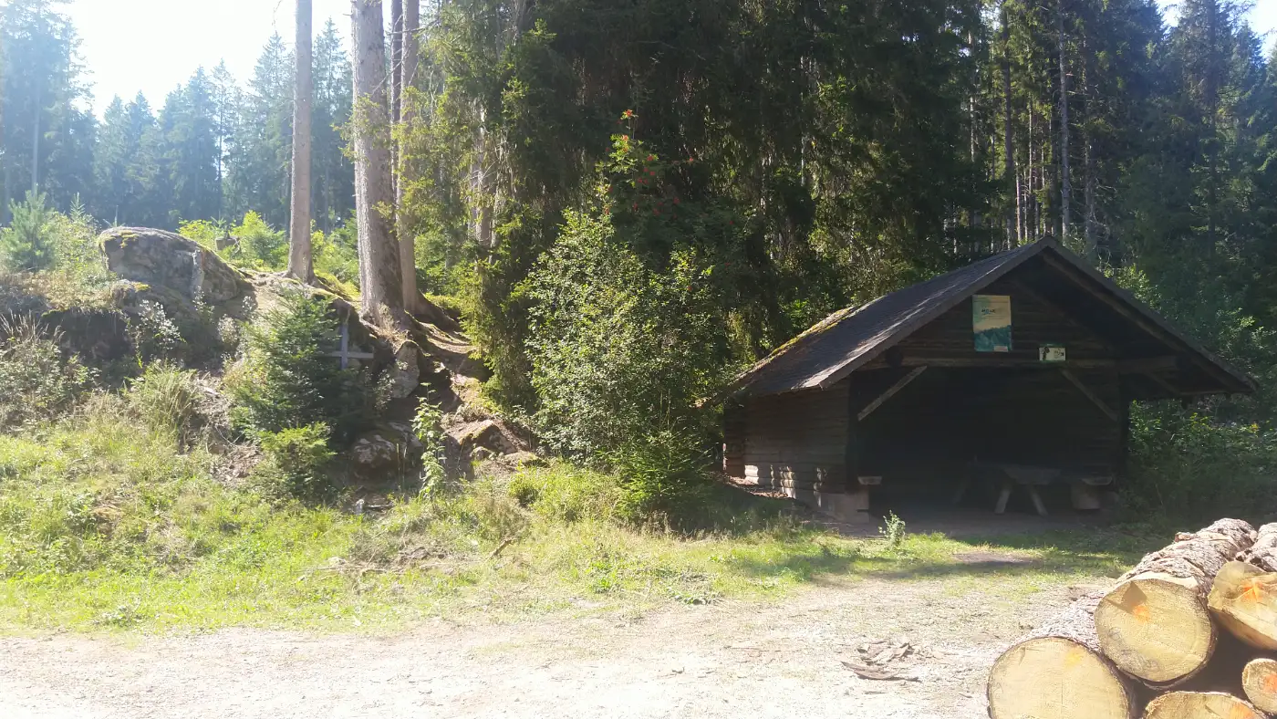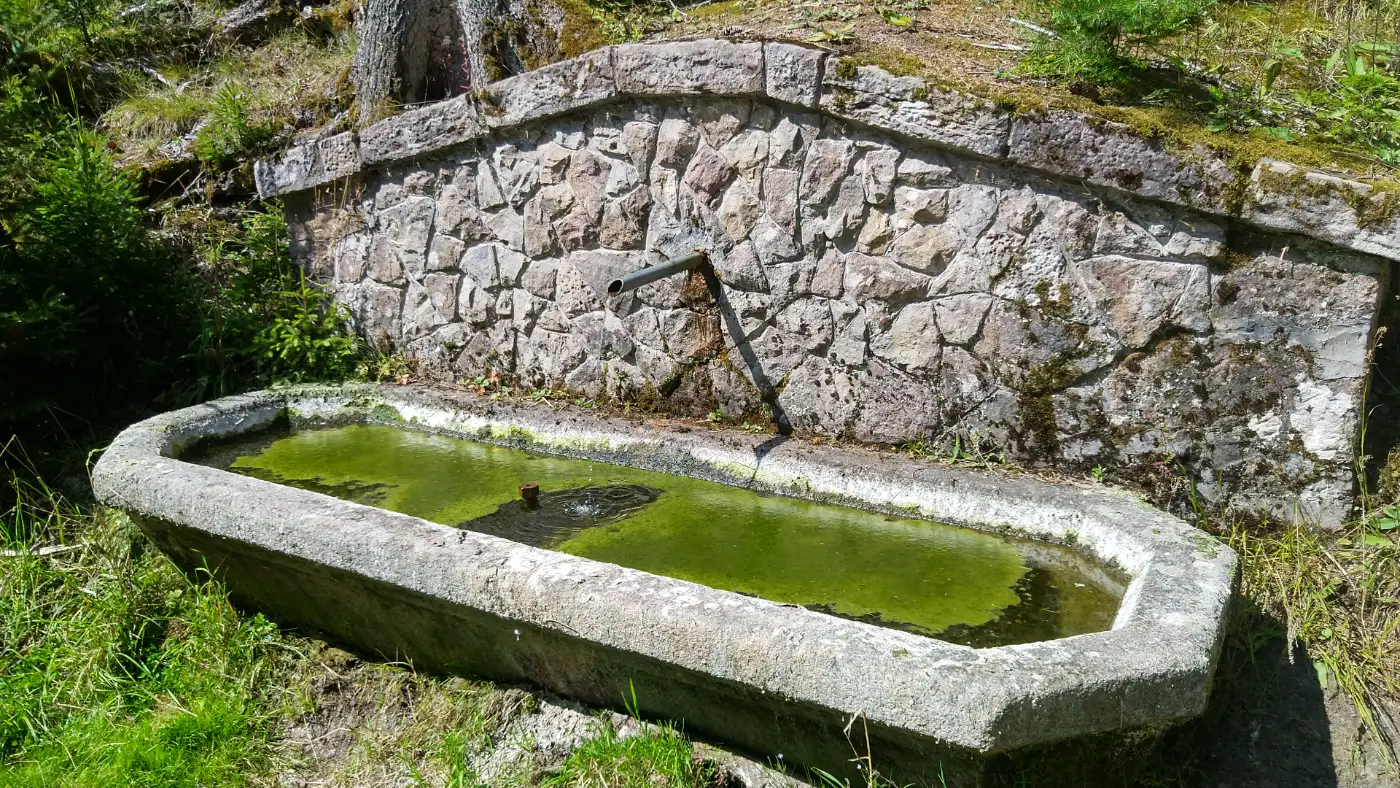 Vom Geistmoosweg führt der Pfad ins malerische Wieselbachtal, vorbei an mehreren Brunnen, kleinen Teichen und gemütlichen Rastplätzen. Schließlich erreichen wir den Pfeifferlochweiher, einen beschaulichen See, der gerade im Sommer mit seinem klaren Wasser zur erfrischenden Abkühlung einlädt. Unweit des Weihers setzen wir unseren Weg fort und gelangen am Waldgasthof Auerhahn im Neuhäusle vorbei, der an der alten Vöhrenbacher Straße liegt. Wer möchte, kann hier eine Pause einlegen und sich stärken, bevor wir den letzten Abschnitt in Richtung Unterkirnach in Angriff nehmen.Der Drachenbrunnen