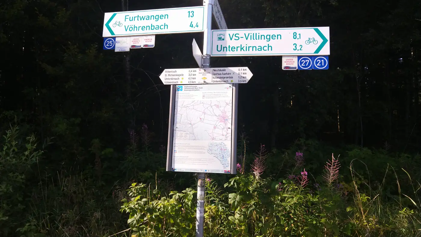 Auf dem Weg nach Unterkirnach treffen wir auf die Drachenquelle - einen imposanten Brunnen, dessen kunstvoll gestaltete Form an einen mächtigen Drachen erinnert. Der Drachenbrunnen ist nicht nur ein Blickfang für Wanderer, sondern auch ein beliebtes Ziel für Einheimische und Besucher, die mit Kanistern anreisen, um das frische Quellwasser direkt vor Ort abzufüllen. Von hier sind es nur noch etwa ein Kilometer bis ins Ortszentrum von Unterkirnach und zur Bushaltestelle Kirnachbrücke, von der regelmäßig Busse zwischen Villingen und Furtwangen fahren. Sollte bis zur Abfahrt noch etwas Zeit bleiben, lohnt sich ein Abstecher zum nahegelegenen Mühlenplatz: Dort kann man die historische Kirnachmühle besichtigen und die Wartezeit auf angenehme Weise überbrücken.Diese Tour wurde am 10.08.2025 von einer realen Person erwandert, fotografiert und beschrieben. Die GPS-Daten der Fotos wurden vor Ort erfasst und dienten zur exakten Rekonstruktion der Route.