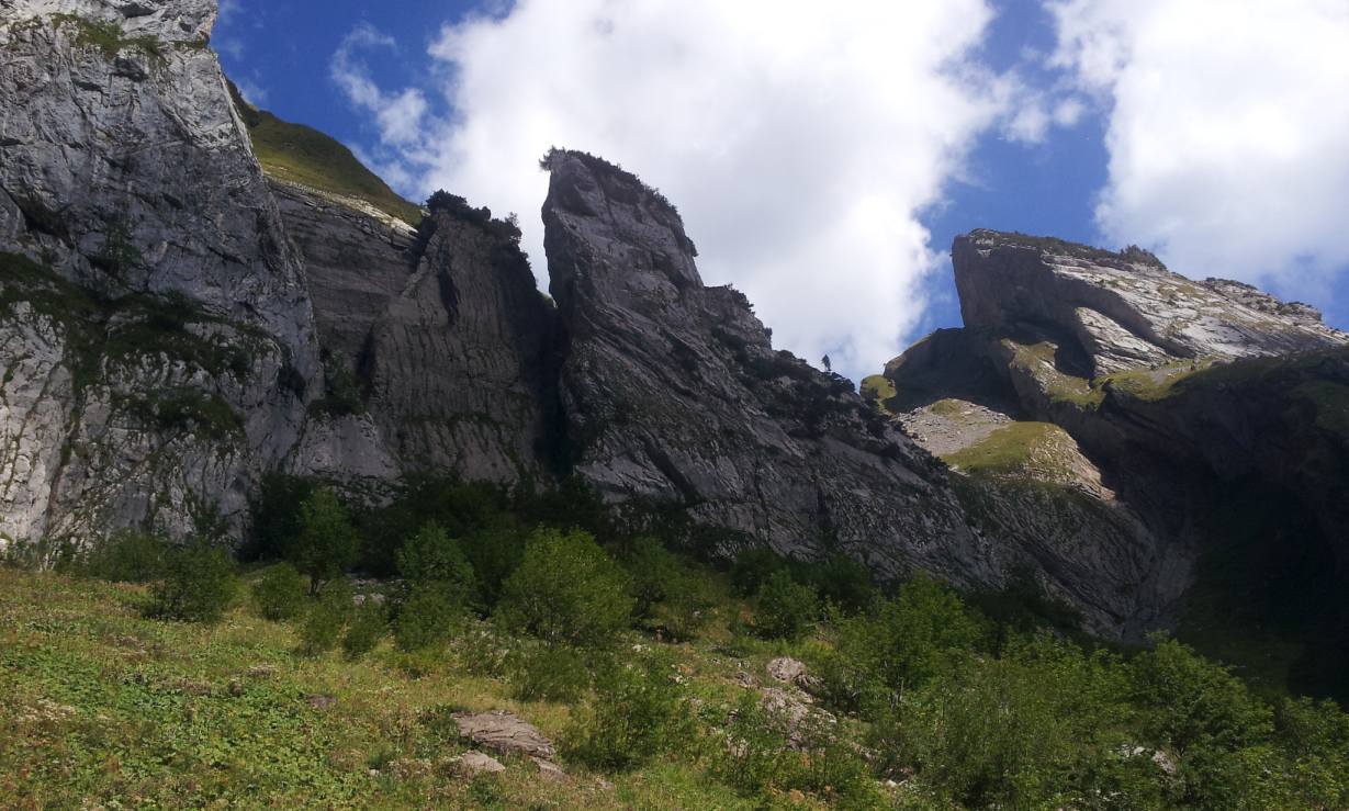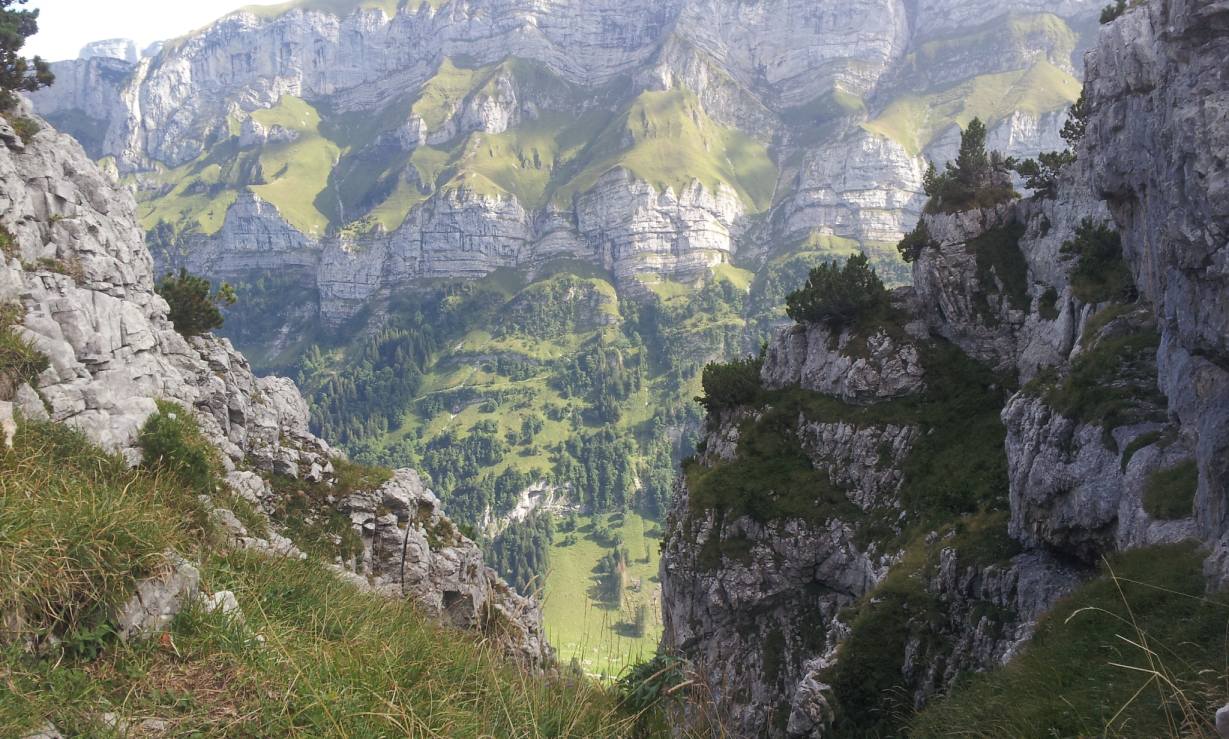 Nun geht es bergab - aber das bedeutet keineswegs weniger Abenteuer! Vom Schäfler aus folgt der Abstieg über einen gesicherten Pfad, der sich spektakulär entlang der steilen Südflanken der Läden und Altenalptürme zur Ebenalp hinunterzieht. Dabei passieren wir markante Felsformationen und genießen immer wieder eindrucksvolle Tiefblicke ins Tal.Felsenkirche Wildkirchli