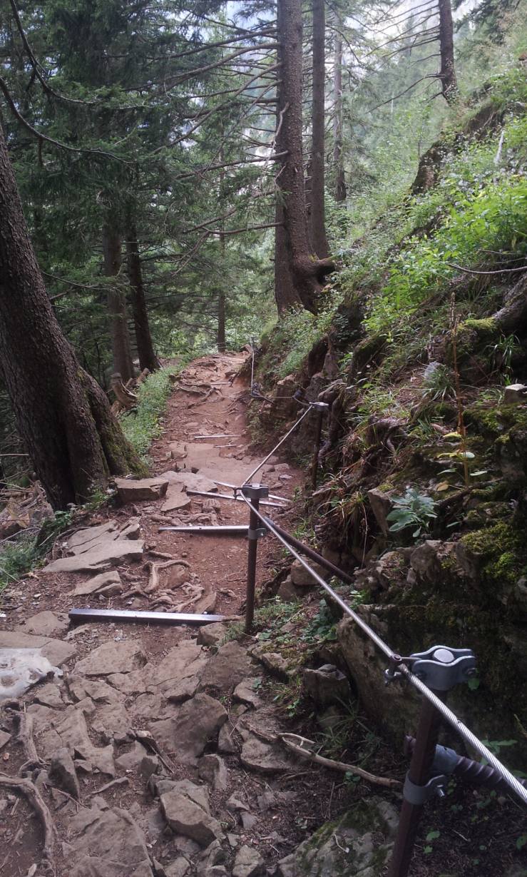 Nun wird der Weg anspruchsvoller: Der Anstieg zum Berggasthaus Mesmer (1.613 m) führt uns durch eine spektakuläre Schlucht, in der wir immer wieder den rauschenden Bergbach auf kleinen Brücken überqueren. Umgeben von Felswänden und alpiner Vegetation genießen wir die raue Schönheit dieser abgeschiedenen Landschaft.Berggasthaus Mesmer