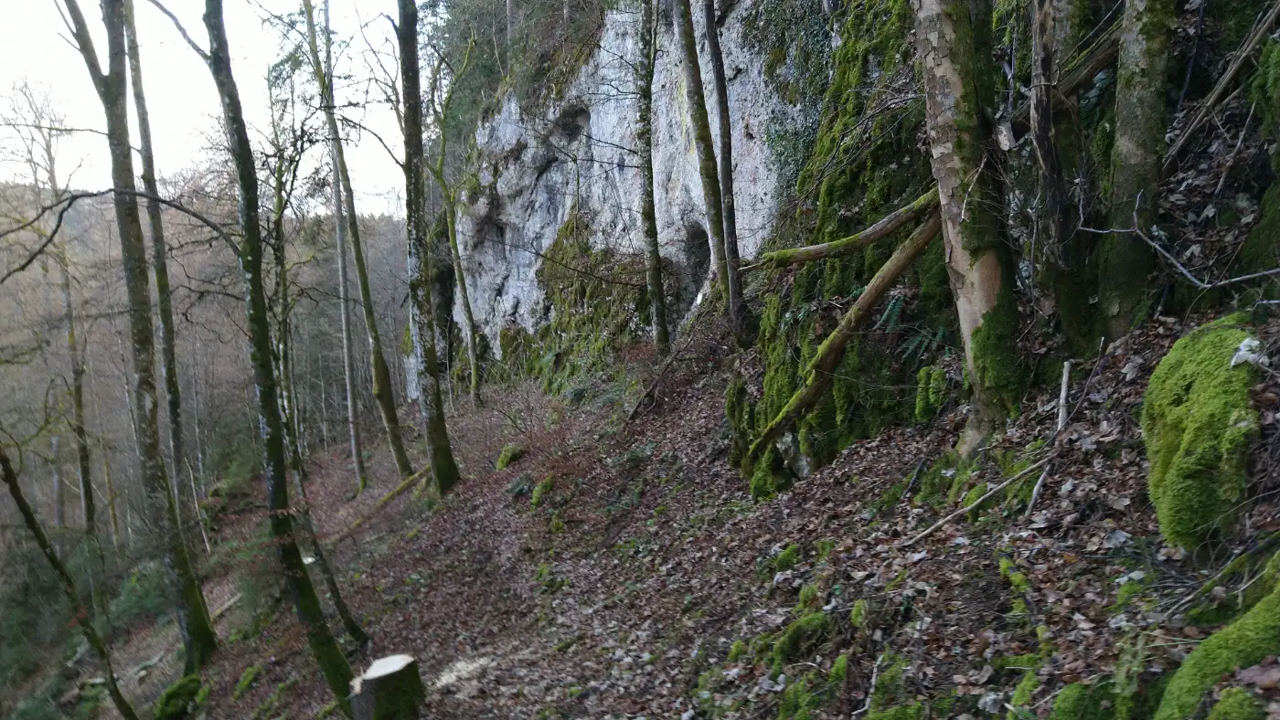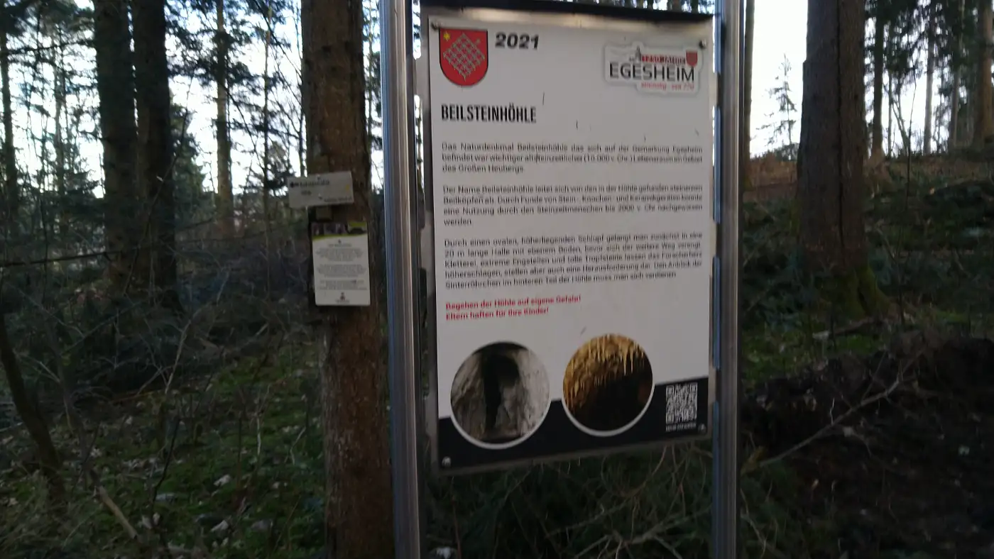 Unser Weg führt uns anschließend weiter zur Beilsteinhöhle, die etwas versteckt am Rand des Weges liegt. Der Zugang öffnet sich überraschend zwischen den Felsen und bietet einen spannenden Einblick in die geologische Vielfalt der Region. Wir treten vorsichtig näher, spüren die kühle Luft aus dem Inneren und verweilen einen Moment. Die Höhle bildet einen ruhigen Kontrast zu den offenen Flächen der Albhochfläche.Königsheim