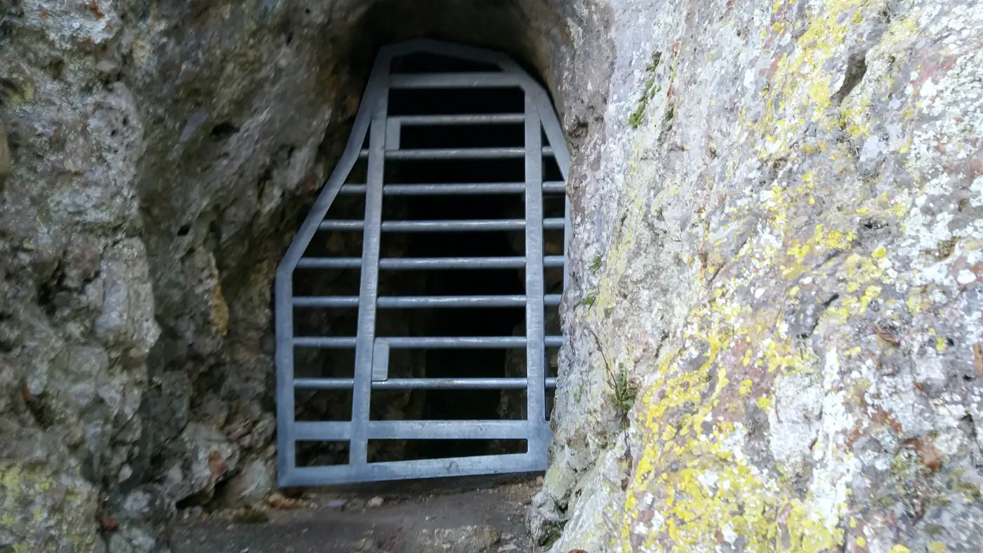 Unweit der Ruine entdecken wir das markante Felsentor, das durch natürliche Verwitterung entstanden ist. Wir treten näher heran und lassen den Blick durch den steinernen Durchbruch in die Tiefe schweifen. Das Zusammenspiel aus Fels, Wald und Licht verleiht diesem Ort eine besondere Atmosphäre. Dieser kurze Abstecher gehört zu den eindrucksvollsten Momenten der Wanderung und lädt zu einer kleinen Pause ein.Beilsteinhöhle