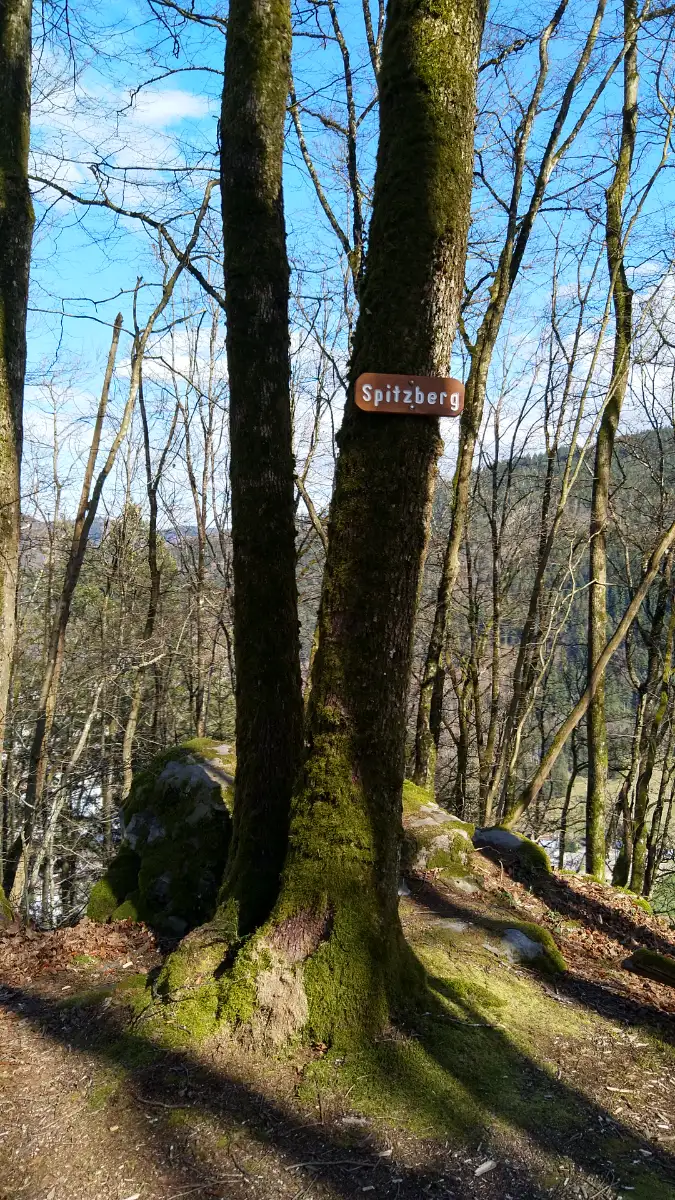 Jetzt ist Kondition gefragt! Der Aufstieg zum Spitzberg und weiter zum Spitzfelsen ist steil und anspruchsvoll, doch die Mühe lohnt sich. Entlang des Weges erwarten uns zahlreiche Aussichtspunkte, die atemberaubende Blicke auf die umliegende Landschaft bieten. Oben am Gipfelkreuz angekommen, haben wir den höchsten Punkt unserer Wanderung erreicht - ein perfekter Moment, um durchzuatmen und die Aussicht zu genießen.